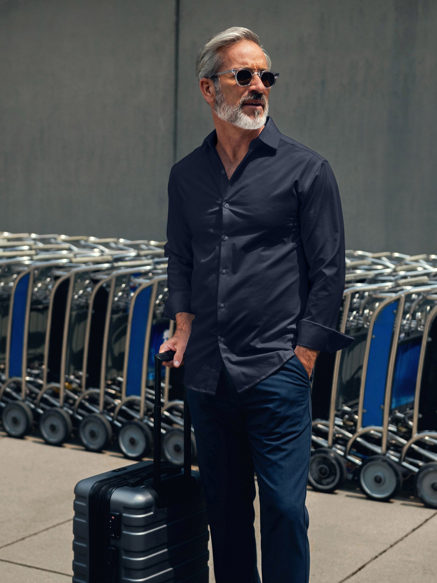 Designed for those who pack with intention. AeroZero° offers the comfort and polish of a dress shirt without the bulk, staying wrinkle-free and ready to wear right out of your bag.