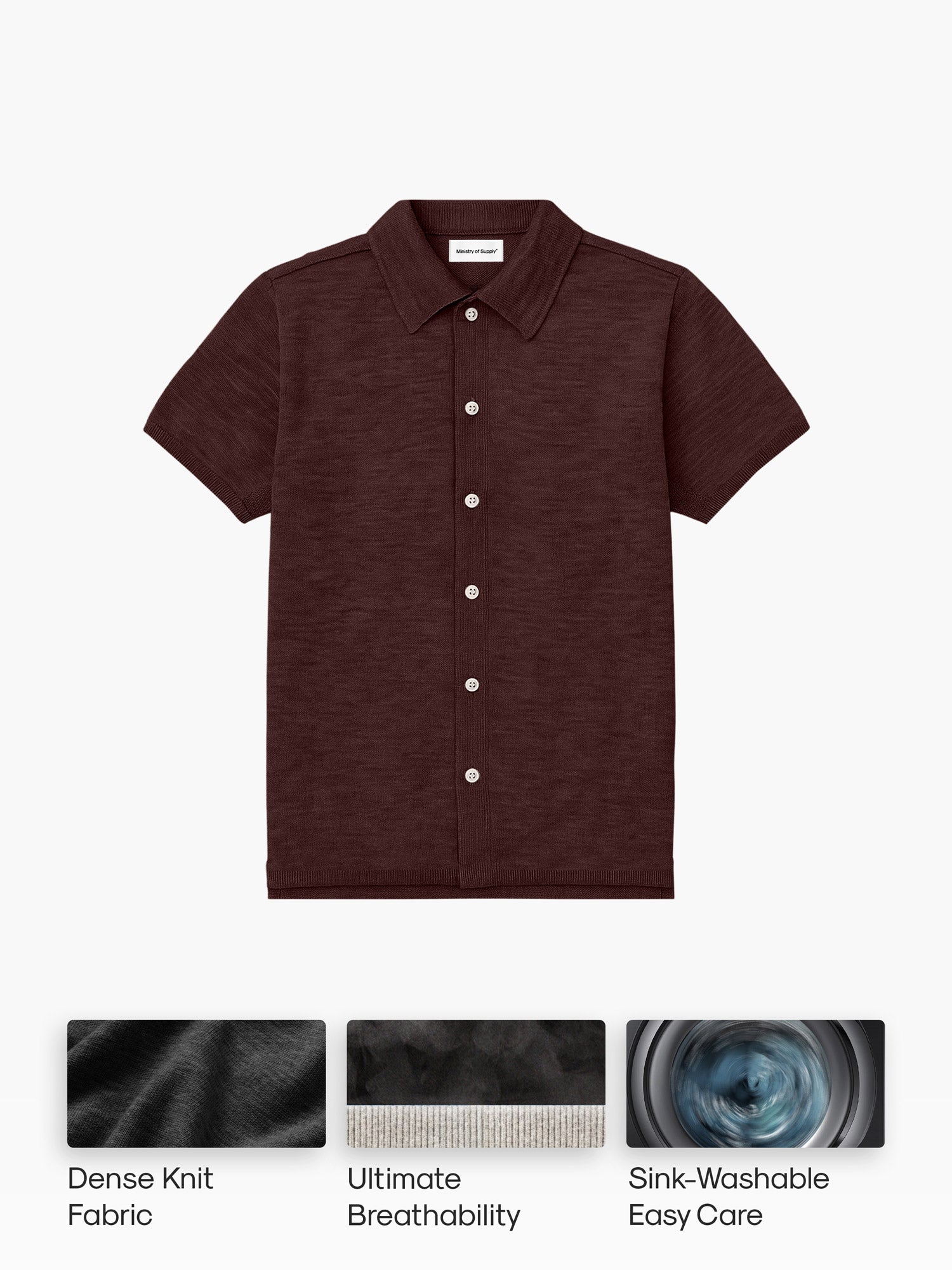 Solution: The Labs 3D Print-Knit Short Sleeve Shirt, blending ultra breathable viscose in our lightest knit structure and targeted vents for warm weather comfort in transit.