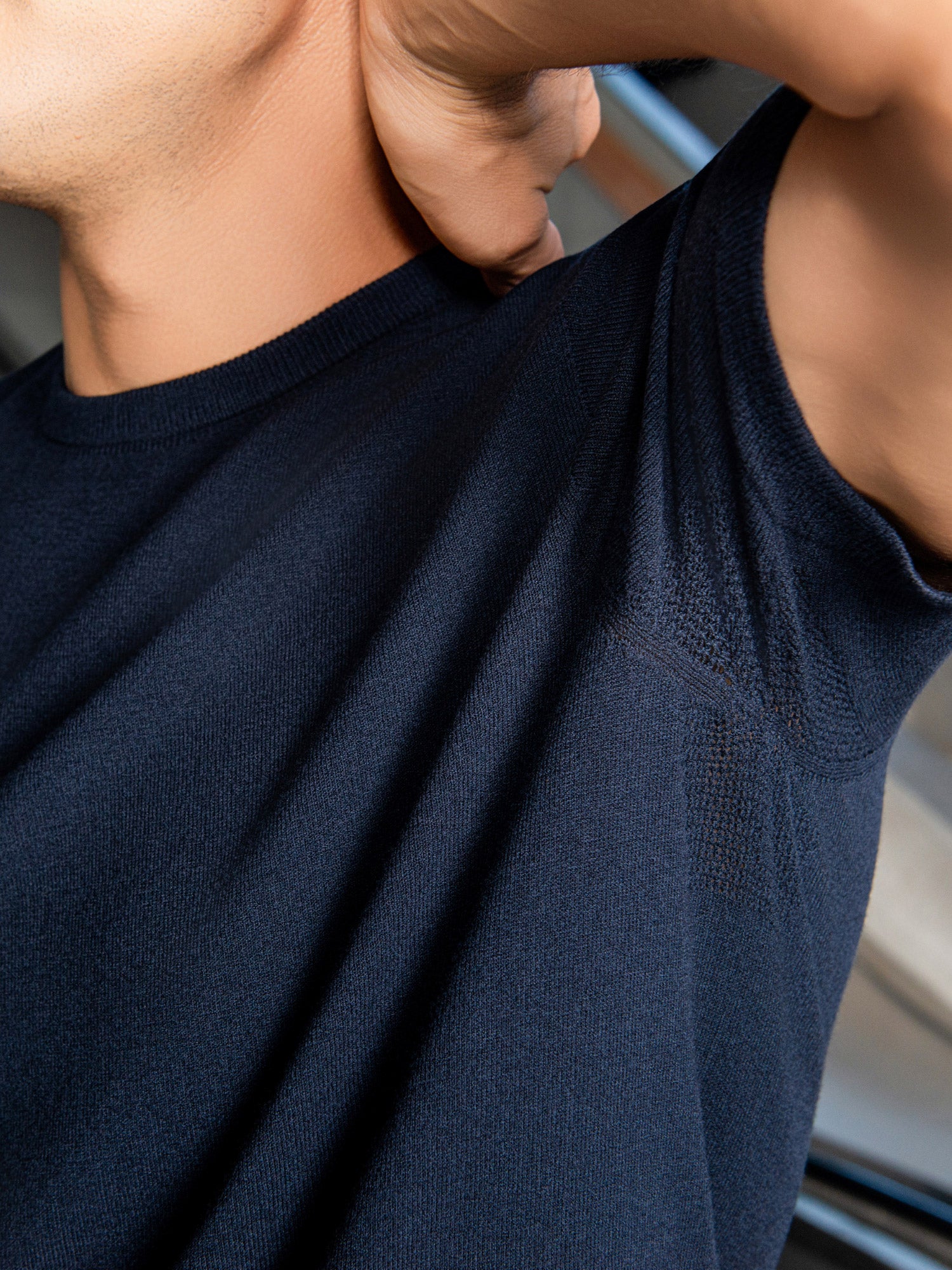 Moisture-wicking yarns and a lightweight jersey knit help you tackle active commutes and stuffy office days without breaking a sweat.