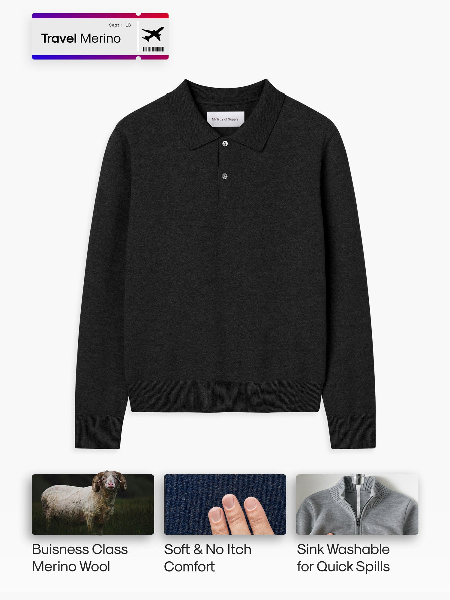 Crafted from ultra-soft 19.5 micron Merino wool, it’s breathable, temperature-regulating, and comfortable enough for redeye naps, yet polished enough for a client meeting right off the plane.
