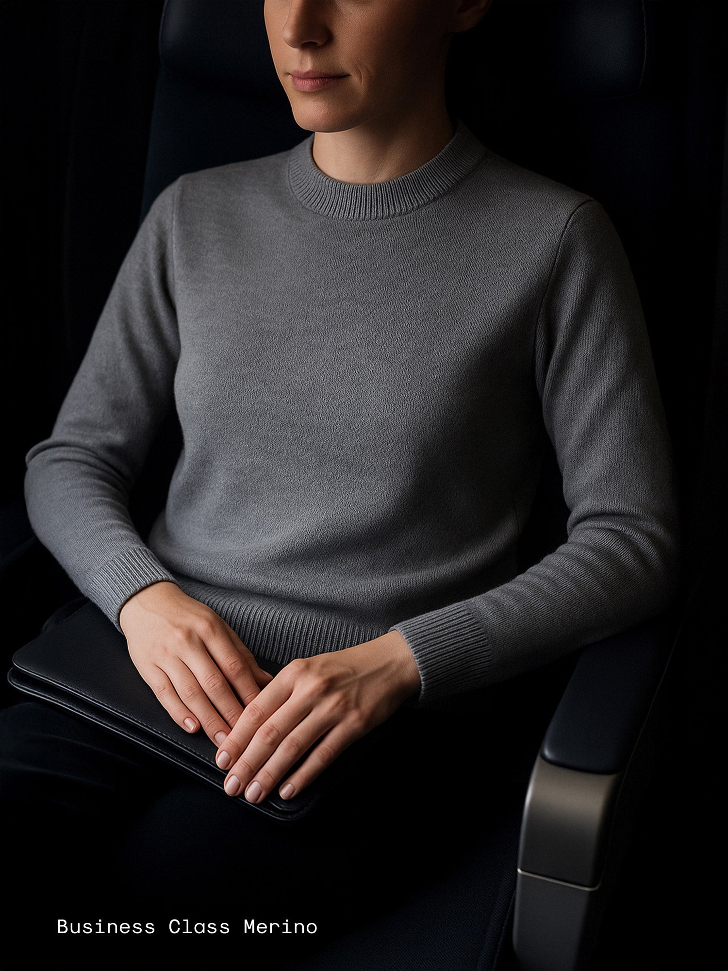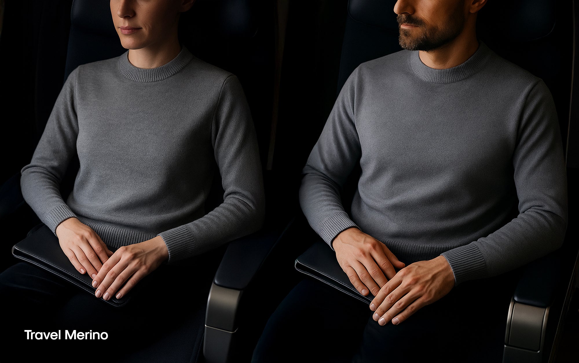 Crafted from ultra-soft 19.5 micron Merino wool, it’s breathable, temperature-regulating, and comfortable enough for redeye naps, yet polished enough for a client meeting right off the plane.