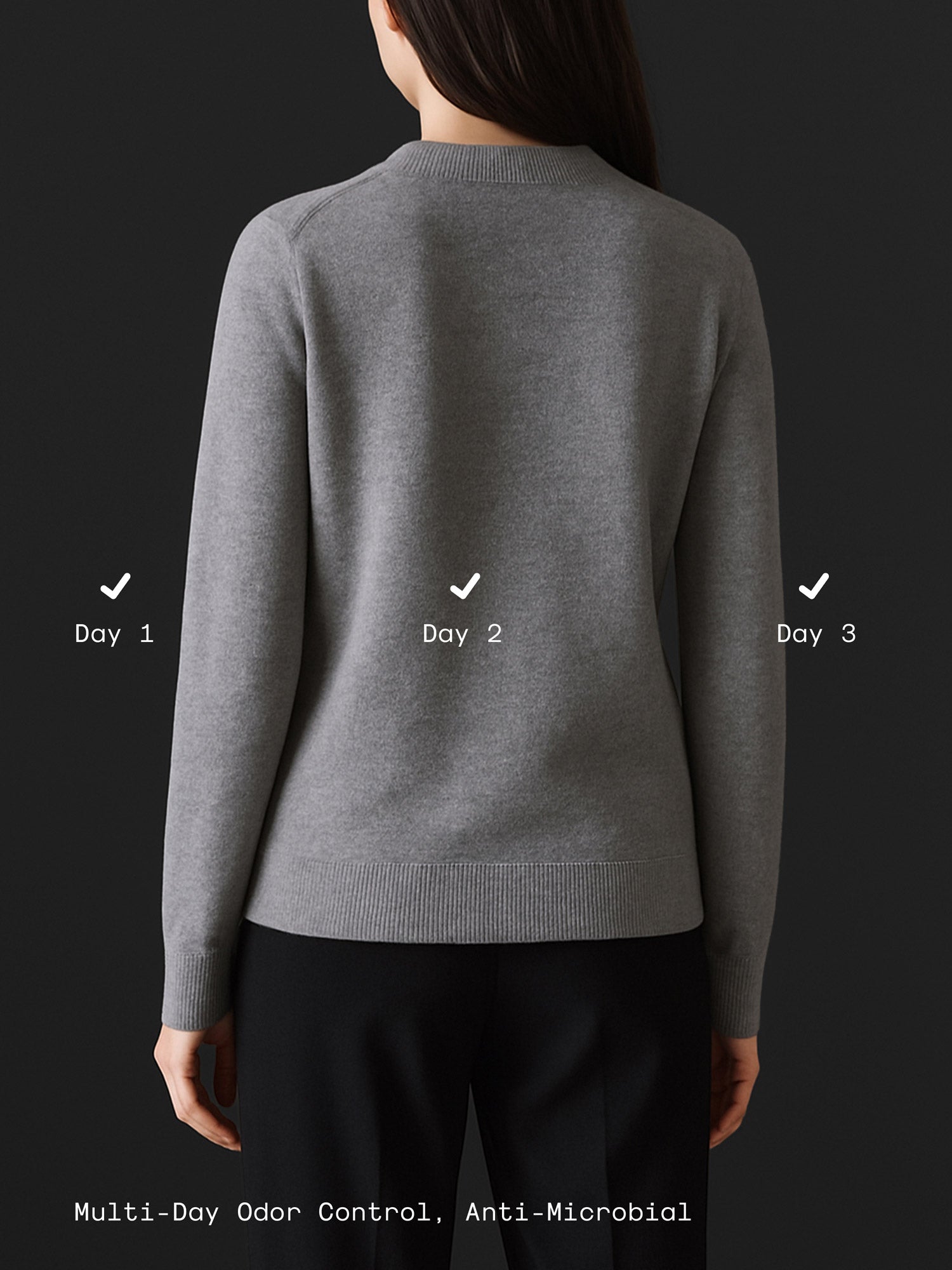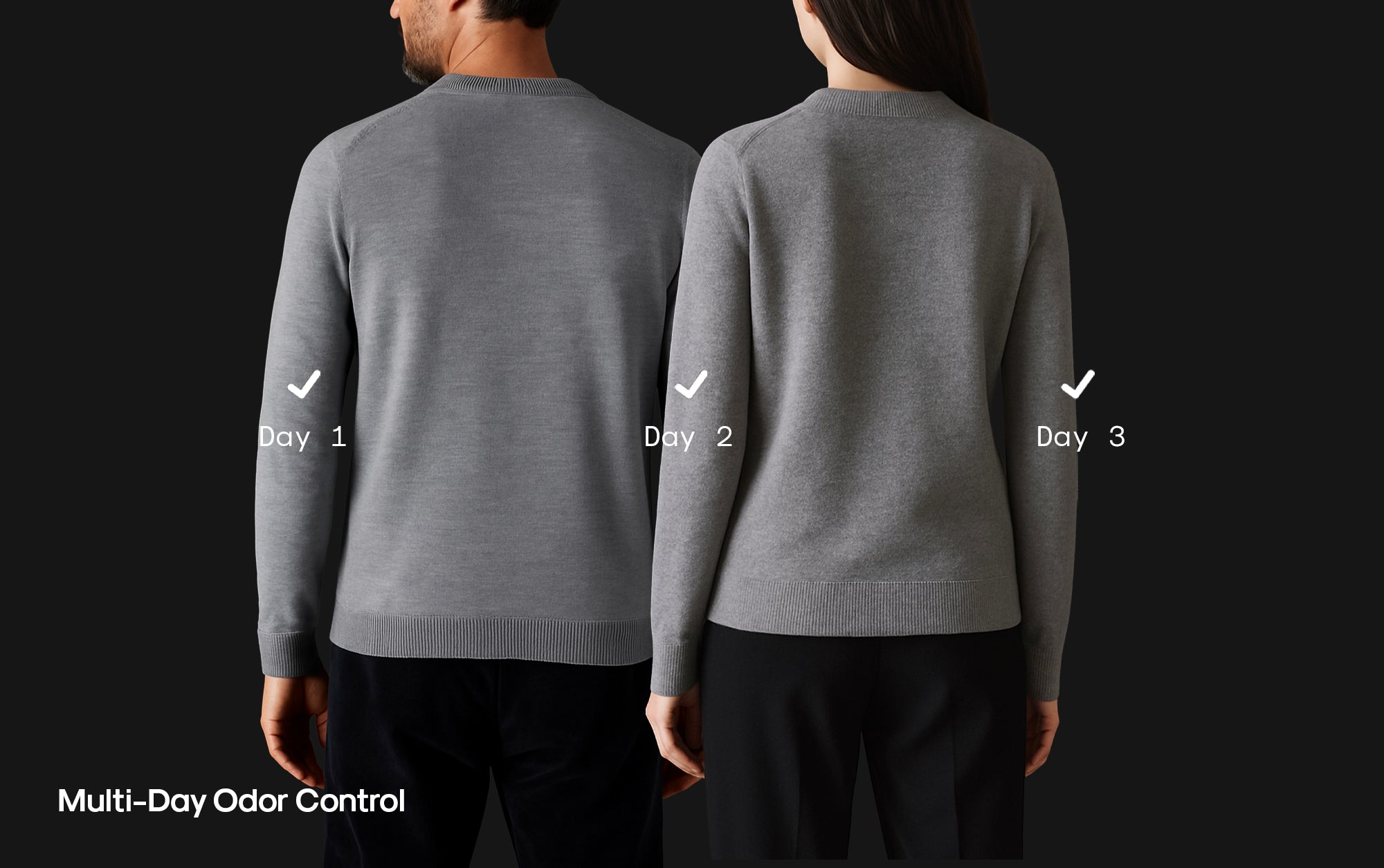 For 18-hour transit days and back-to-back wear, Merino’s hygroscopic fibers naturally inhibit the growth of odor-causing bacteria — keeping you fresher, longer.