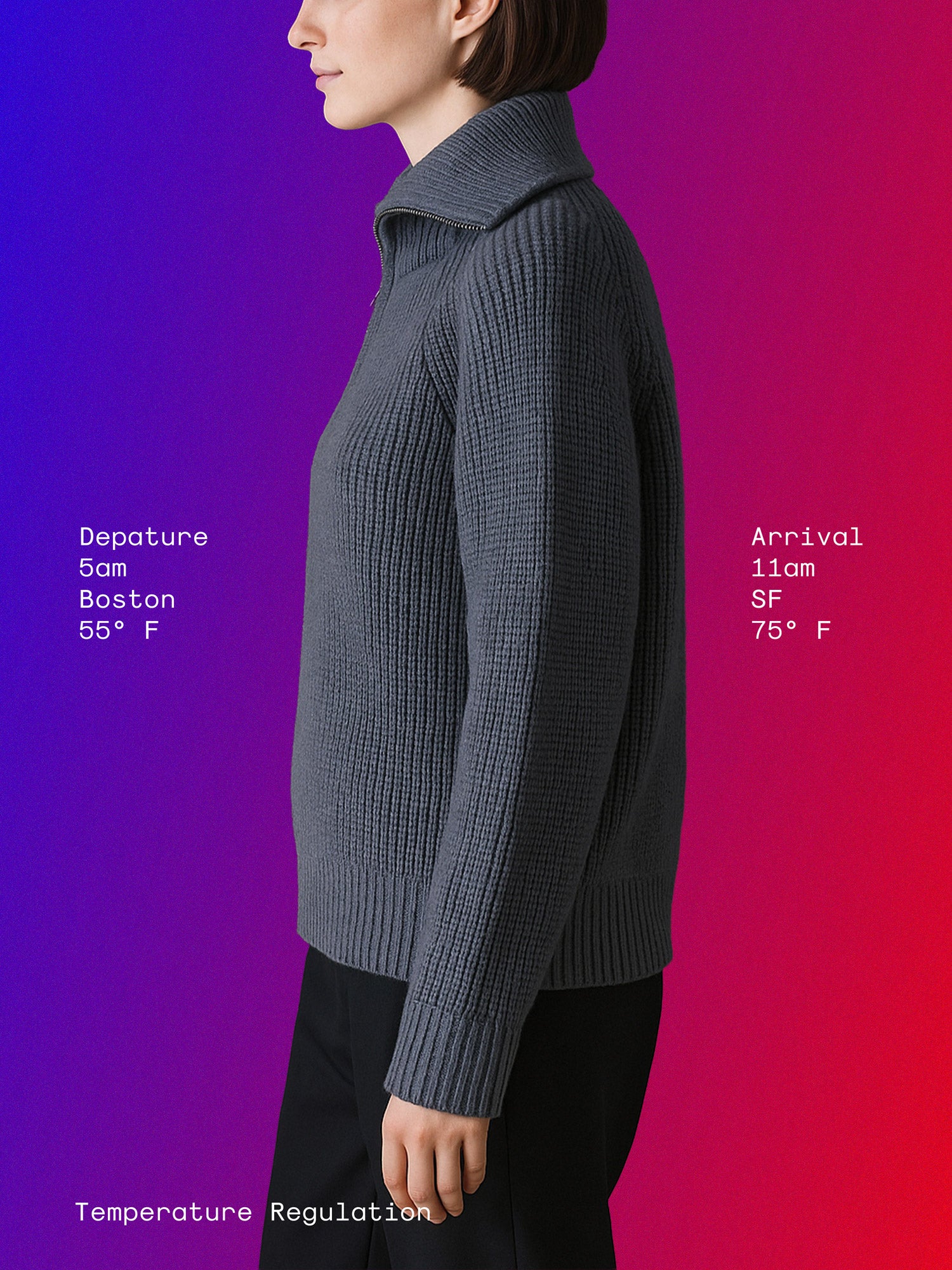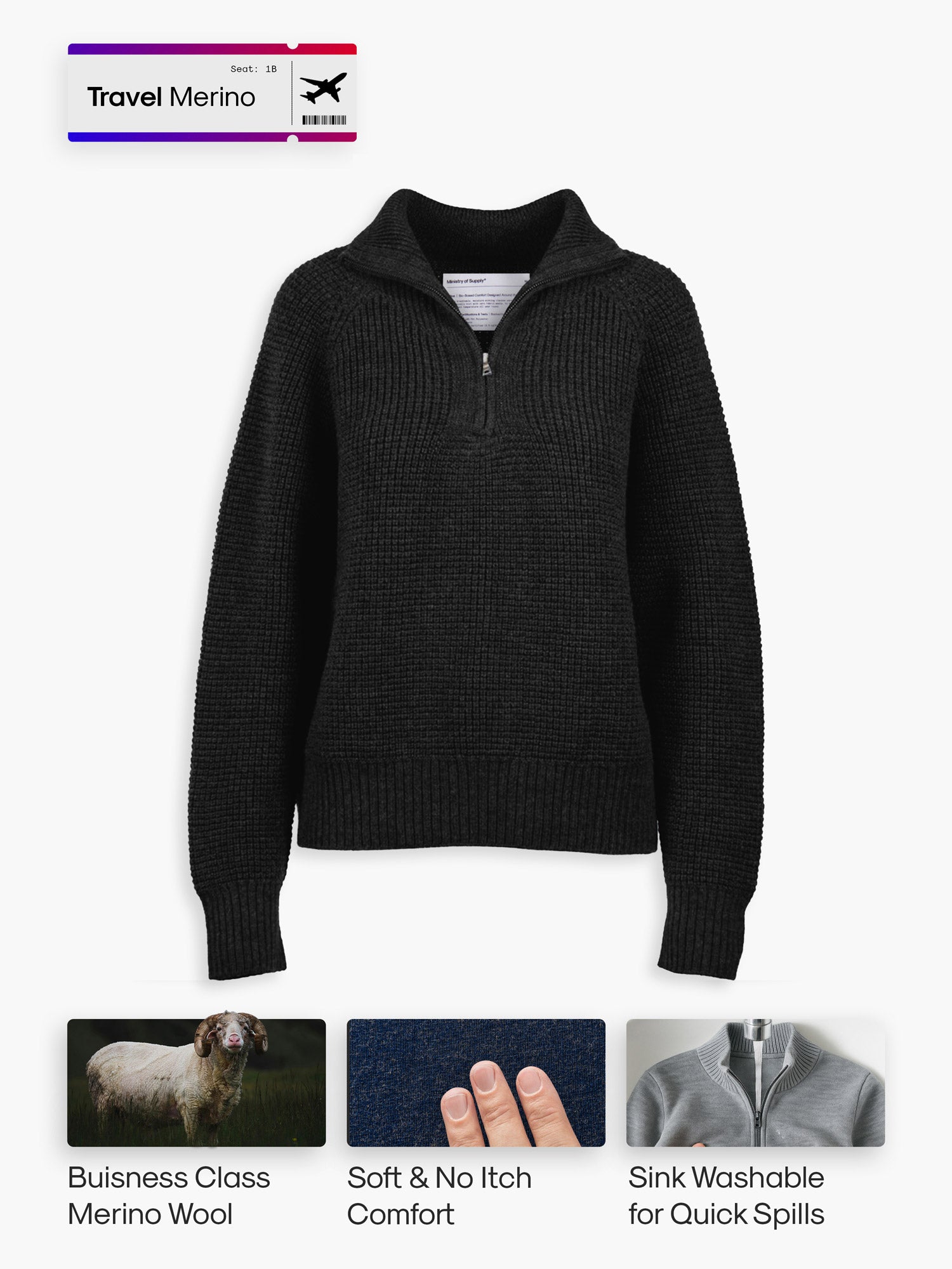 Crafted from ultra-soft 19.5 micron Merino wool, it’s breathable, temperature-regulating, and comfortable enough for redeye naps, yet polished enough for a client meeting right off the plane.