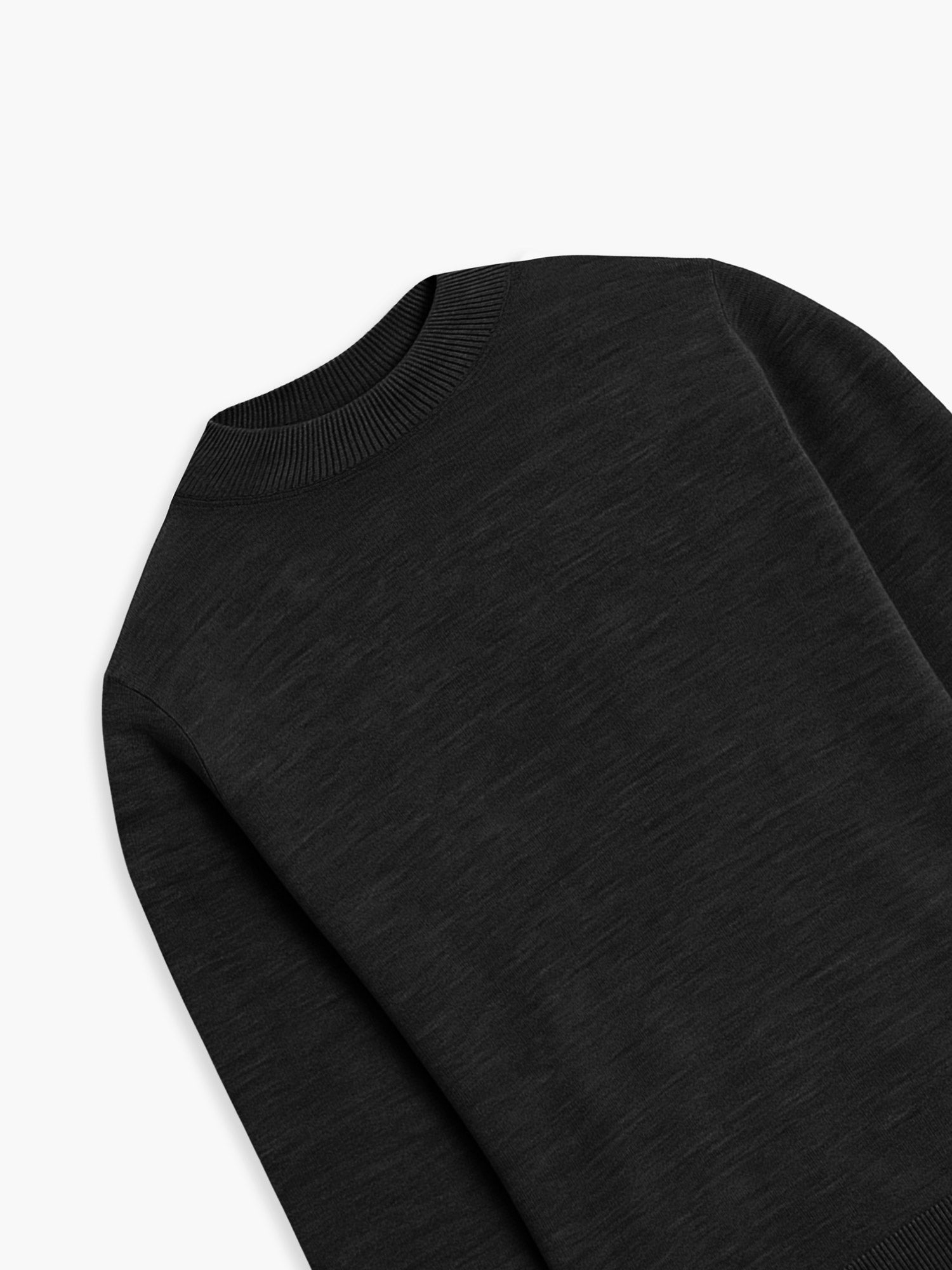 • 1x1 rib trim at collar, cuffs, and hem maintains a clean, polished look