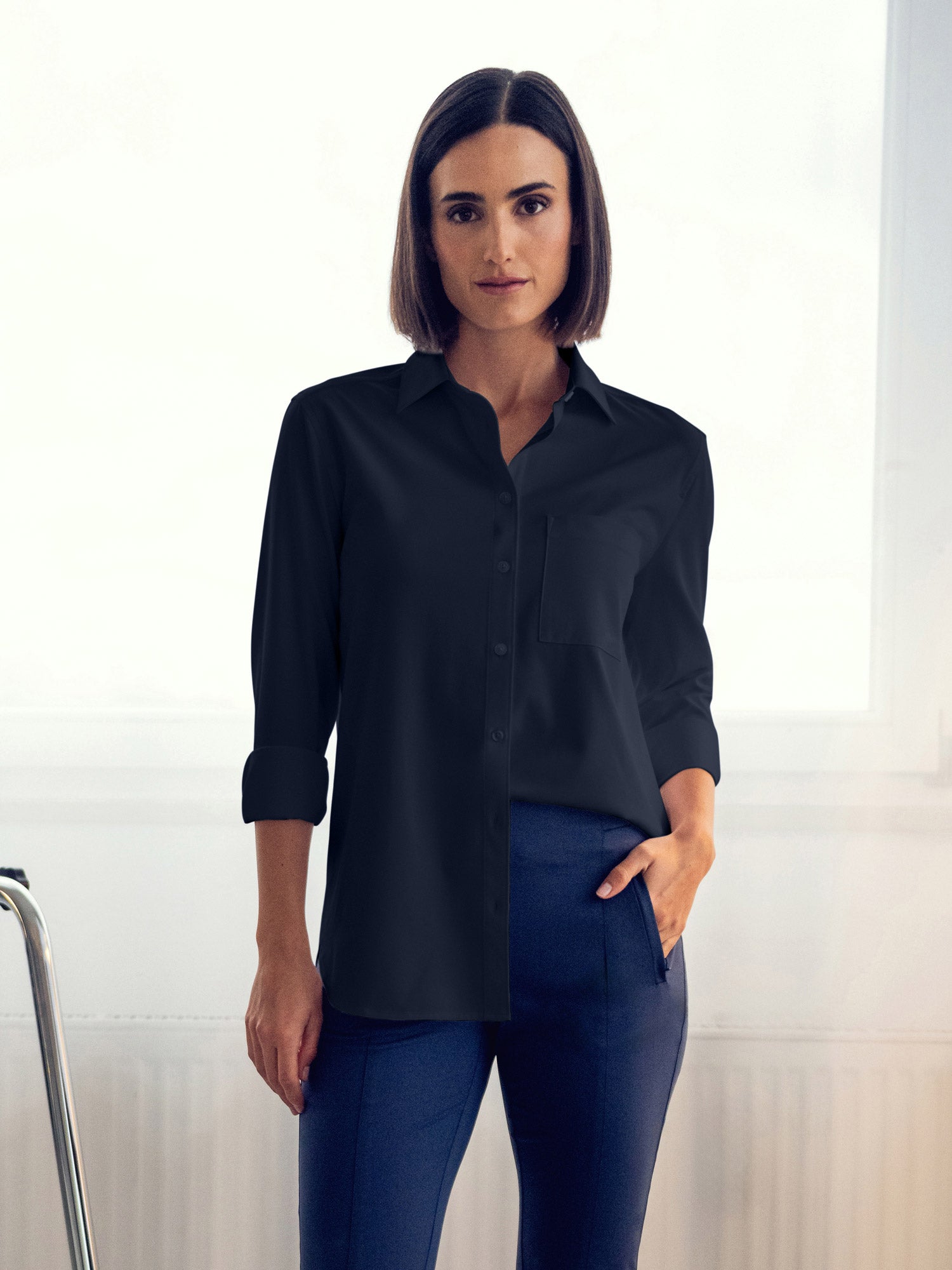 Classic fit: More tailored fit compared to Relaxed. Shorter length can be worn tucked or untucked. Updated, easier fit through the chest compared to AeroZero° Tailored Shirt.