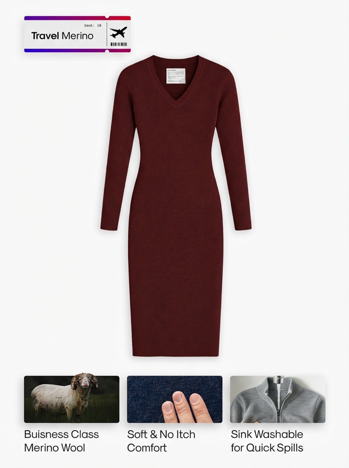 Women's Travel Merino Long Sleeve Dress