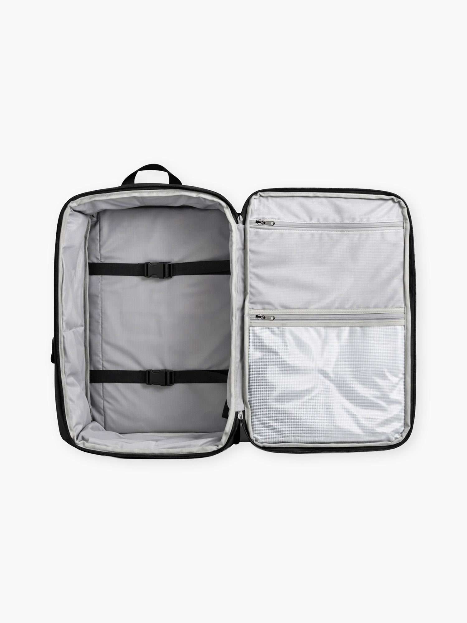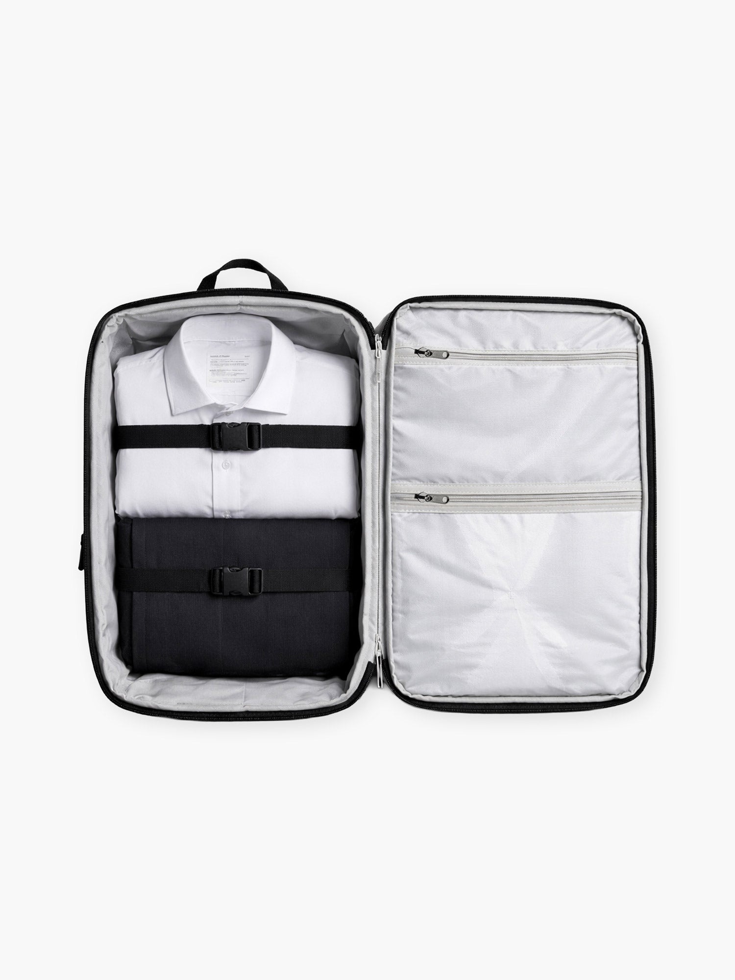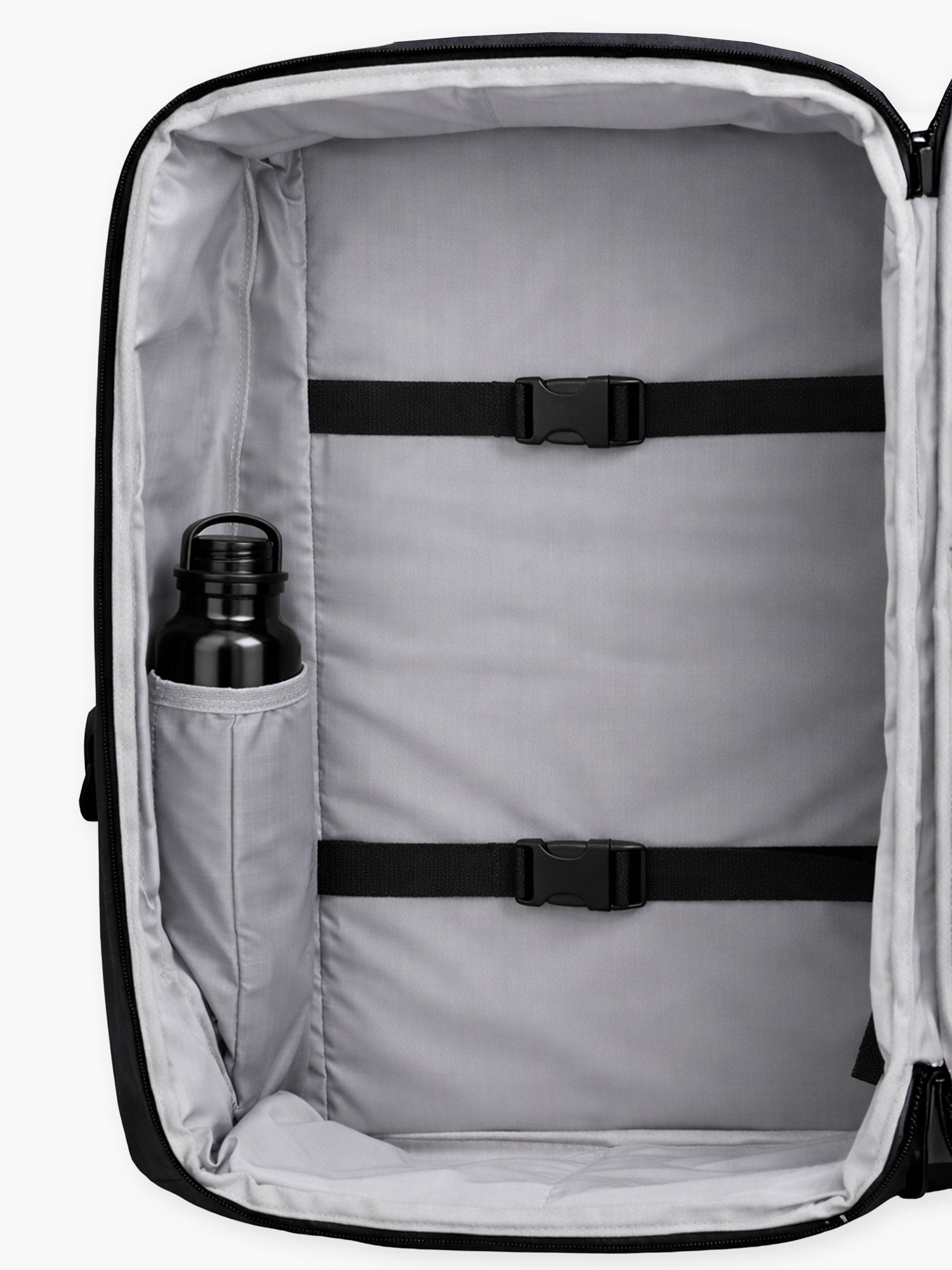 • 8L organized interior keeps passports, cards, cables, and pouches fixed in place