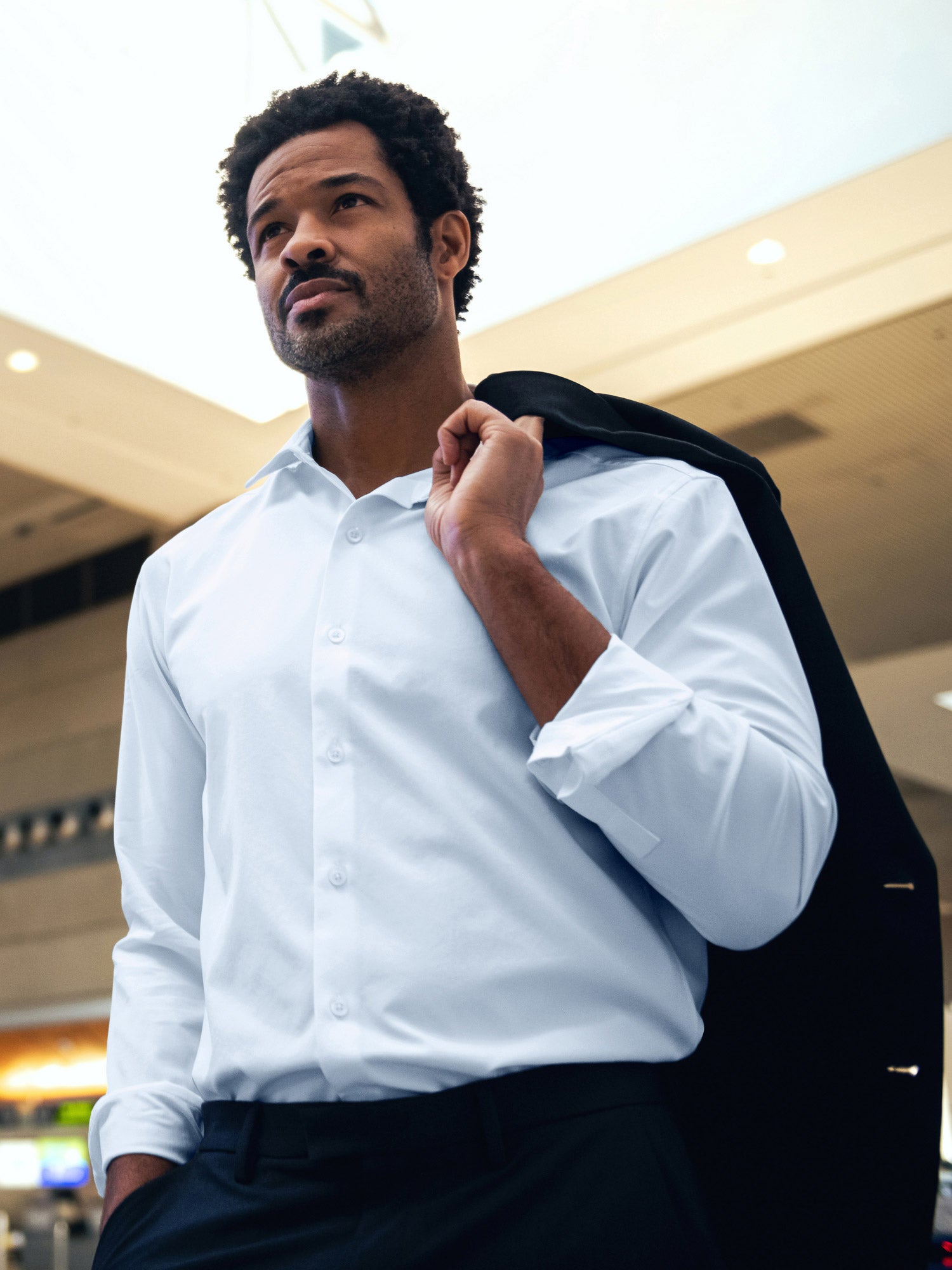 Designed for those who pack with intention. AeroZero° offers the comfort and polish of a dress shirt without the bulk, staying wrinkle-free and ready to wear right out of your bag.