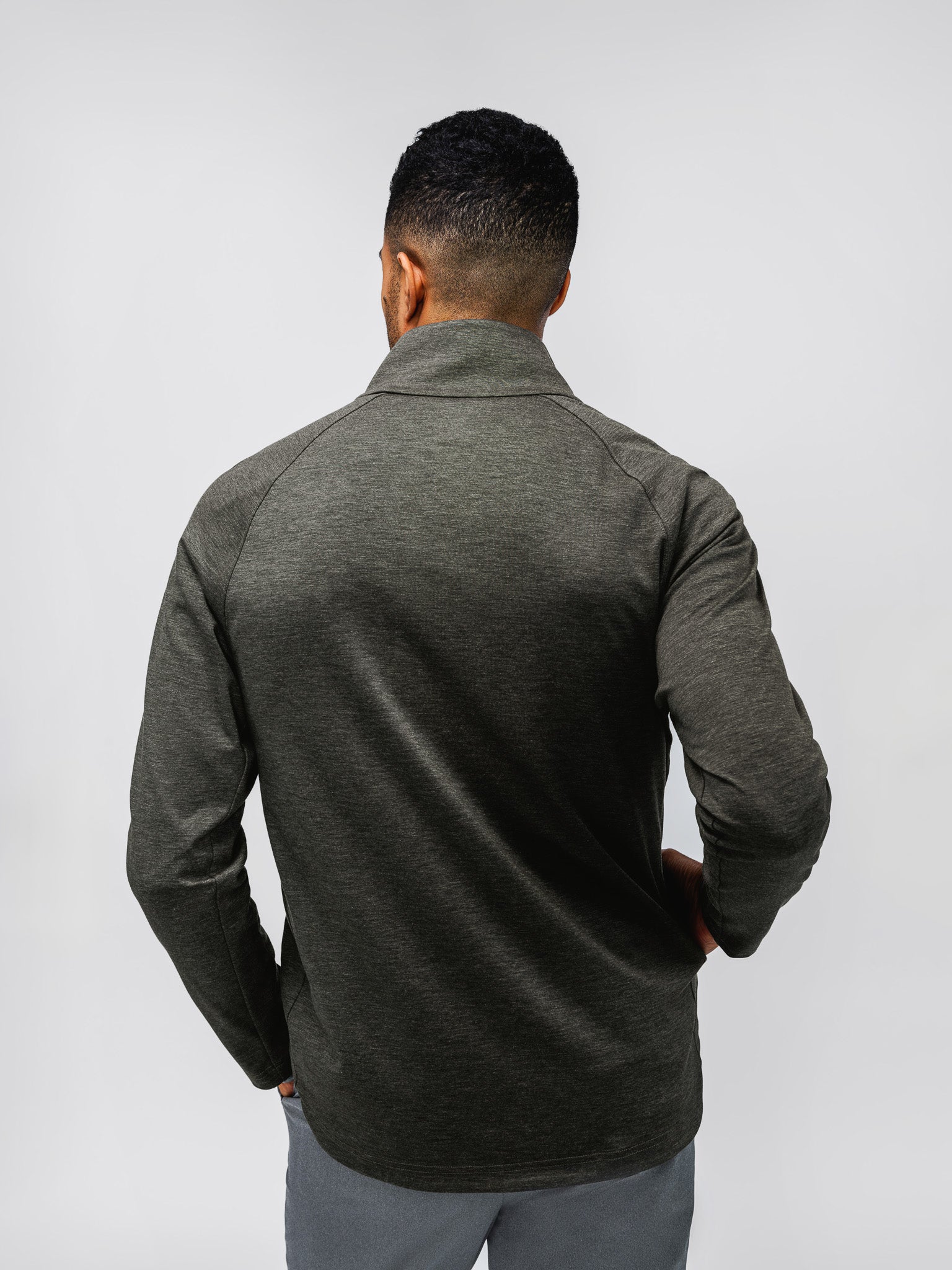 mens fusion double knit quarter 1/4 zip olive heather front full flat mens fusion double knit 1/4 zip olive heather on model mens fusion double knit quarter 1/4 zip olive heather back full flat mens fusion double knit 1/4 zip olive heather on model mens fusion double knit 1/4 zip olive heather on model mens fusion double knit 1/4 zip olive heather on model