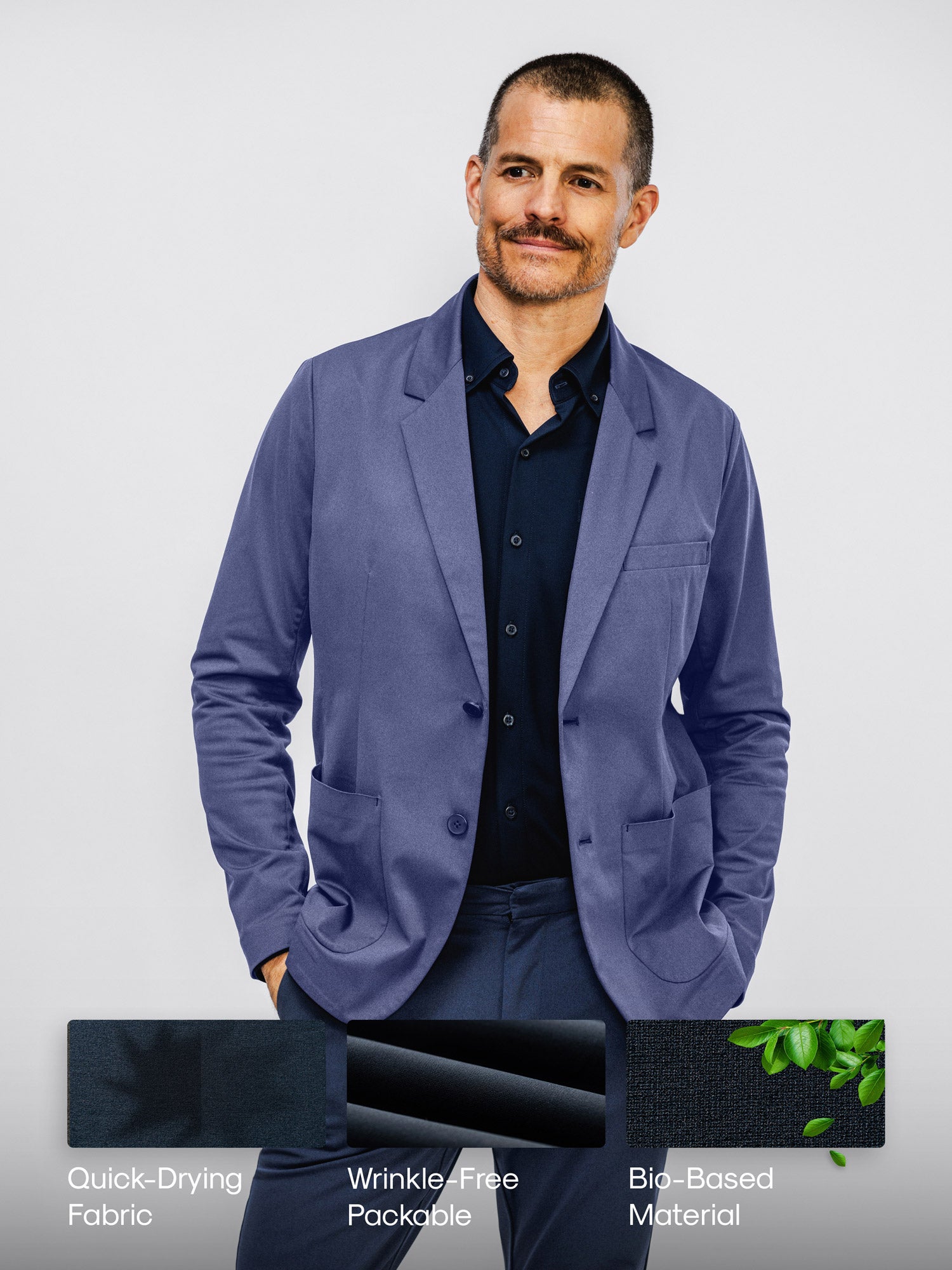 Our Solution: Our third-generation Kinetic Blazer blends a sharp, modern aesthetic with radical stretch and shape retention, unlocking easy full-range motion without bagging out. Combined with best-in-class moisture management and wrinkle resistance, it’s a dependable layer built to help you hit the ground running — whether you're heading into the office or crossing time zones.