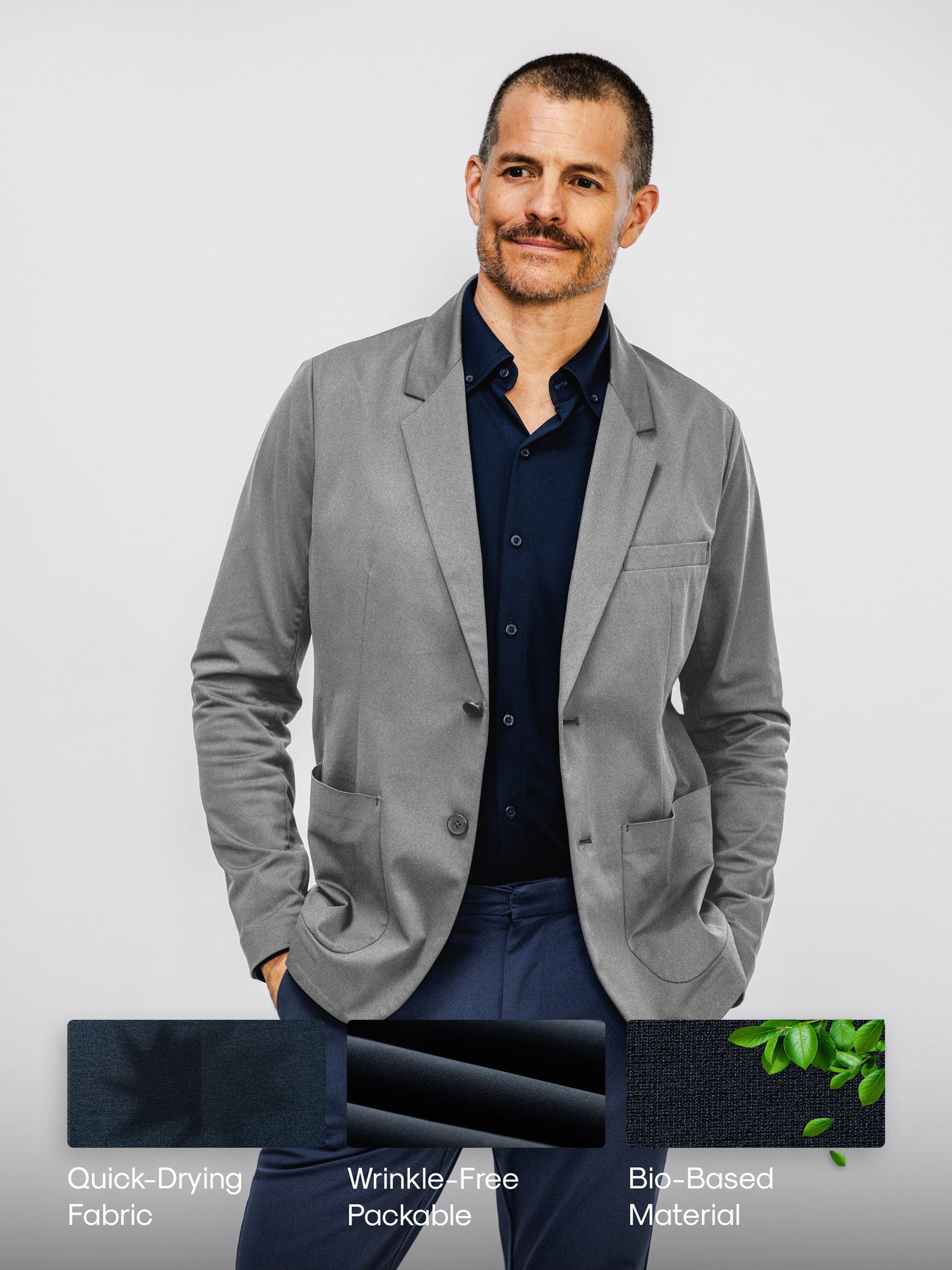Our Solution: Our third-generation Kinetic Blazer blends a sharp, modern aesthetic with radical stretch and shape retention, unlocking easy full-range motion without bagging out. Combined with best-in-class moisture management and wrinkle resistance, it’s a dependable layer built to help you hit the ground running — whether you're heading into the office or crossing time zones.