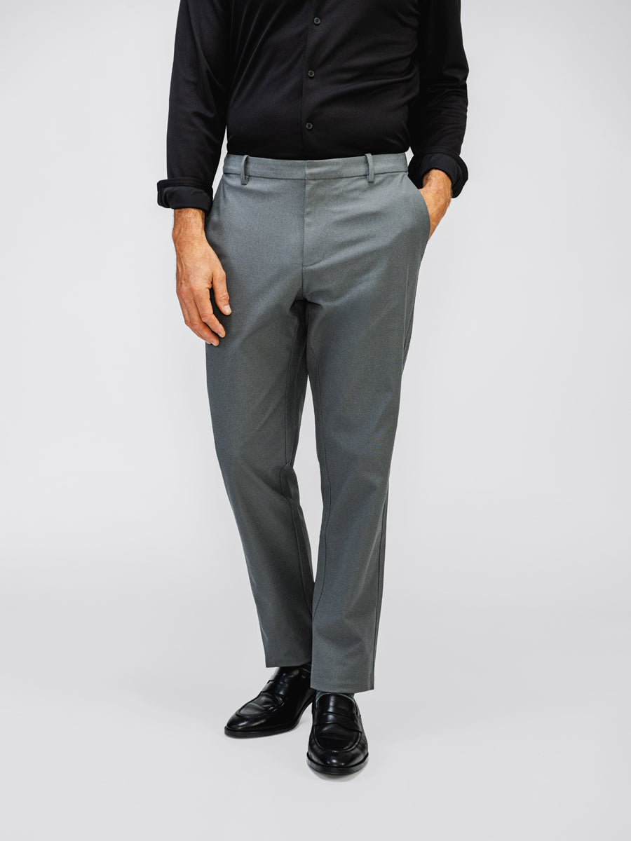 mens apollo dress shirt black mens kinetic pant slate grey on model in studio