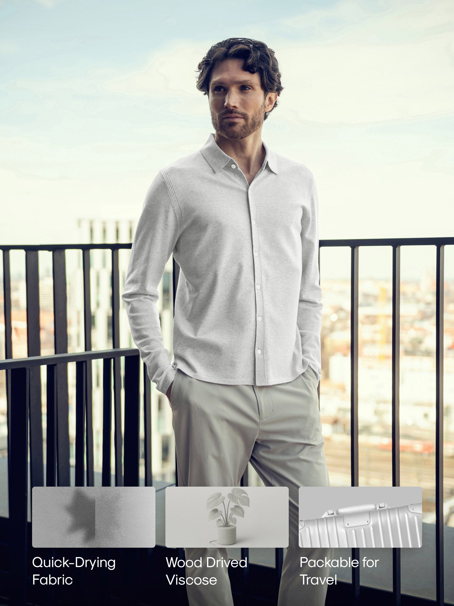 Solution: The Labs 3D Print-Knit Shirt blends ultra breathable viscose with our lightest knit structure and targeted vents for comfort in transit.