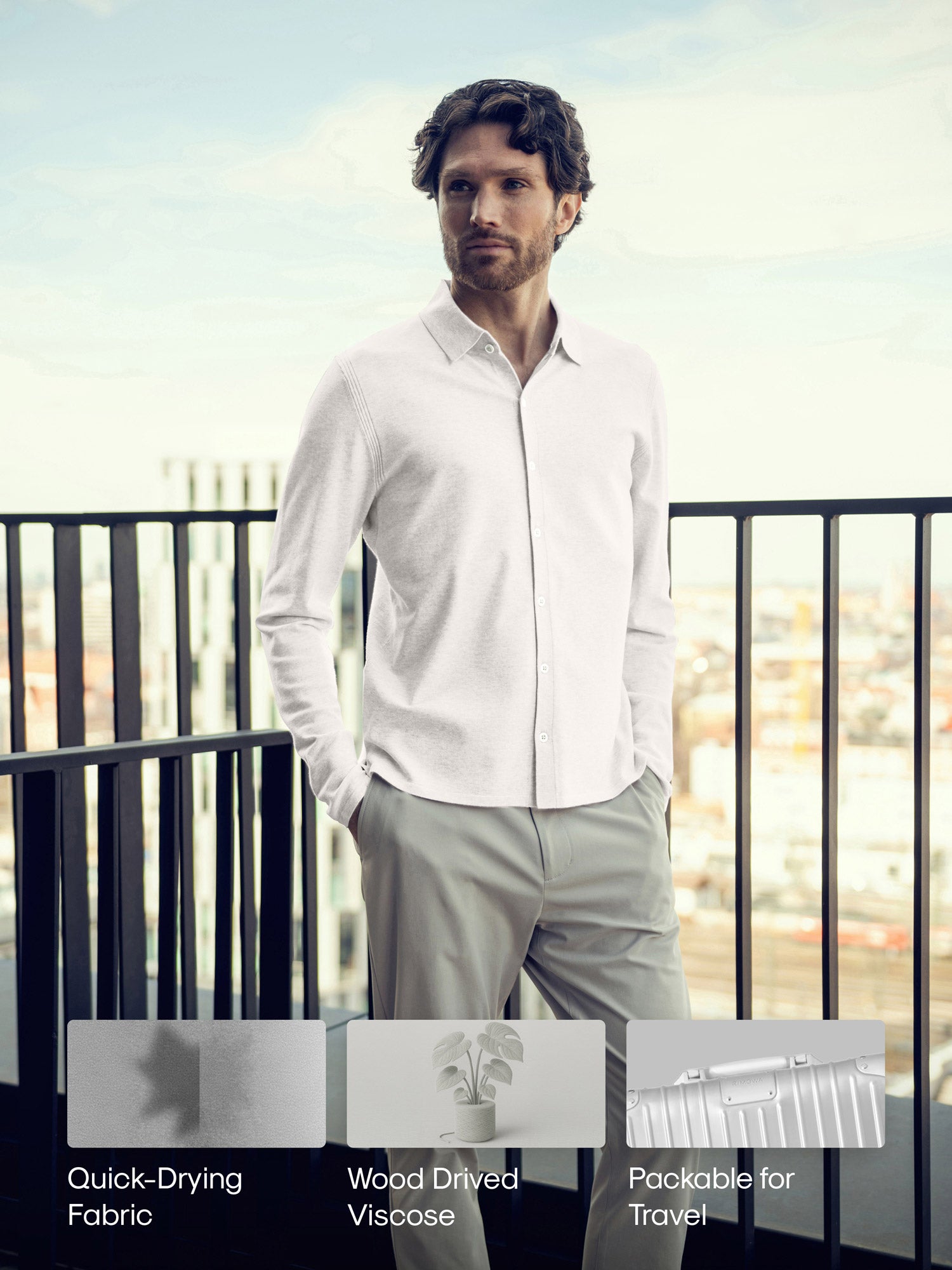 Solution: The Labs 3D Print-Knit Shirt blends ultra breathable viscose with our lightest knit structure and targeted vents for comfort in transit.