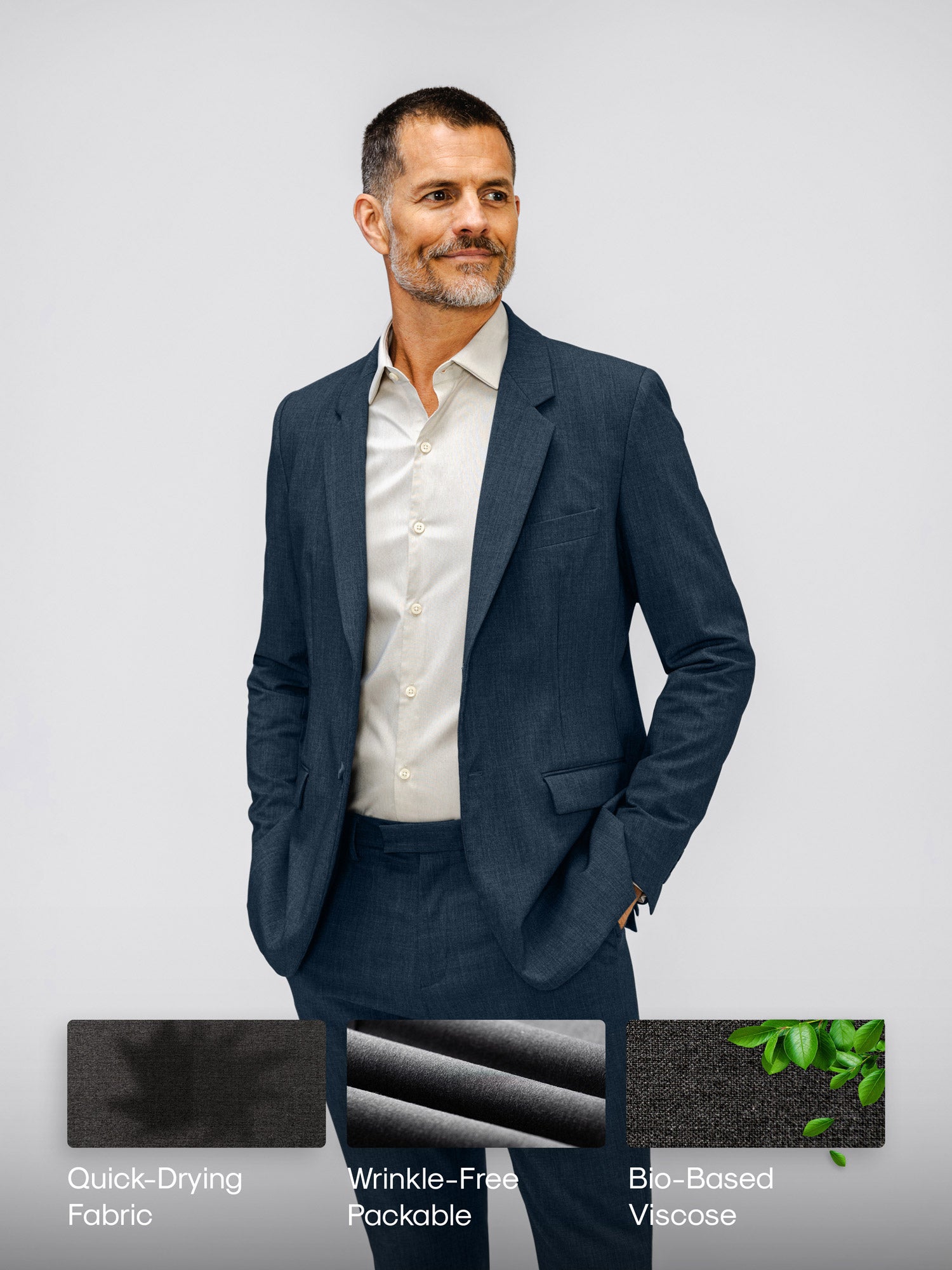 Our Solution: Our latest Velocity Blazer captures the timeless look of wool or linen and upgrades everything else - incredibly soft, stretchy, wrinkle resistant and built for effortless easy care at home or on the go.