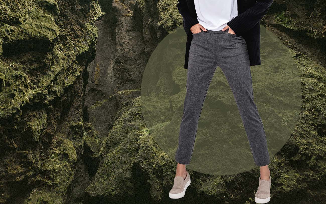 • Adjustable snap inseam for full (30"), ankle (28 1/2") or cropped (27") lengths