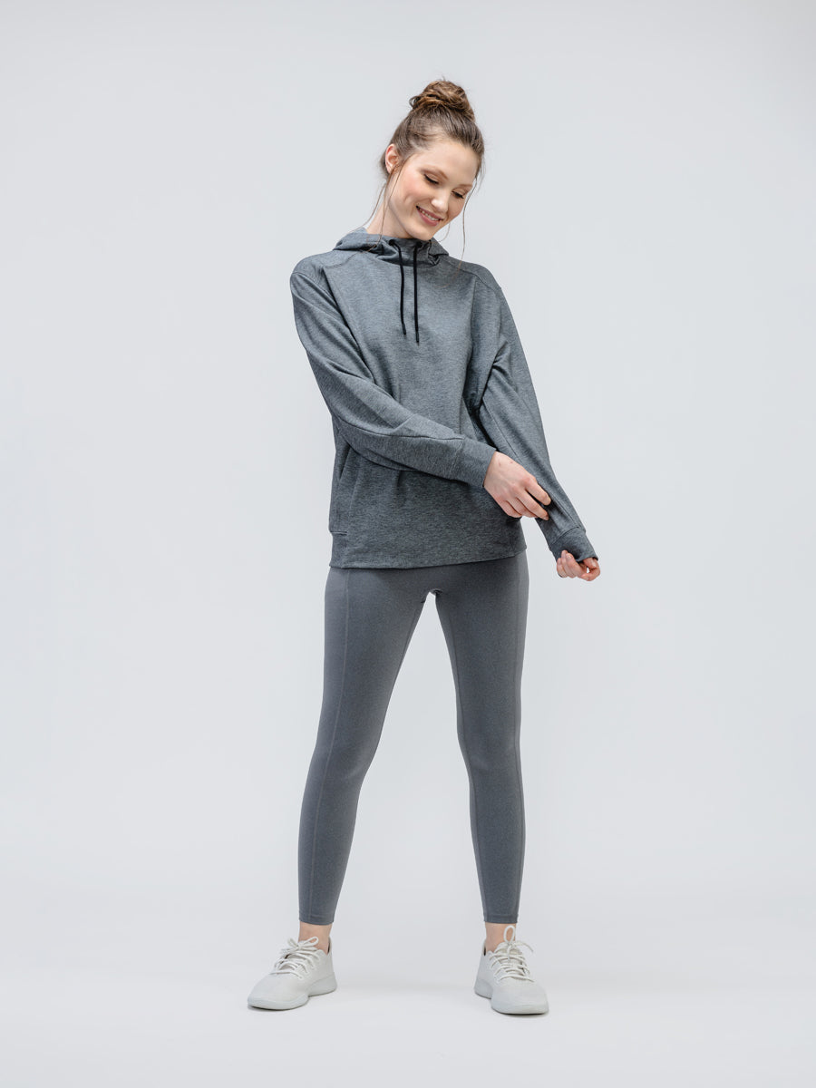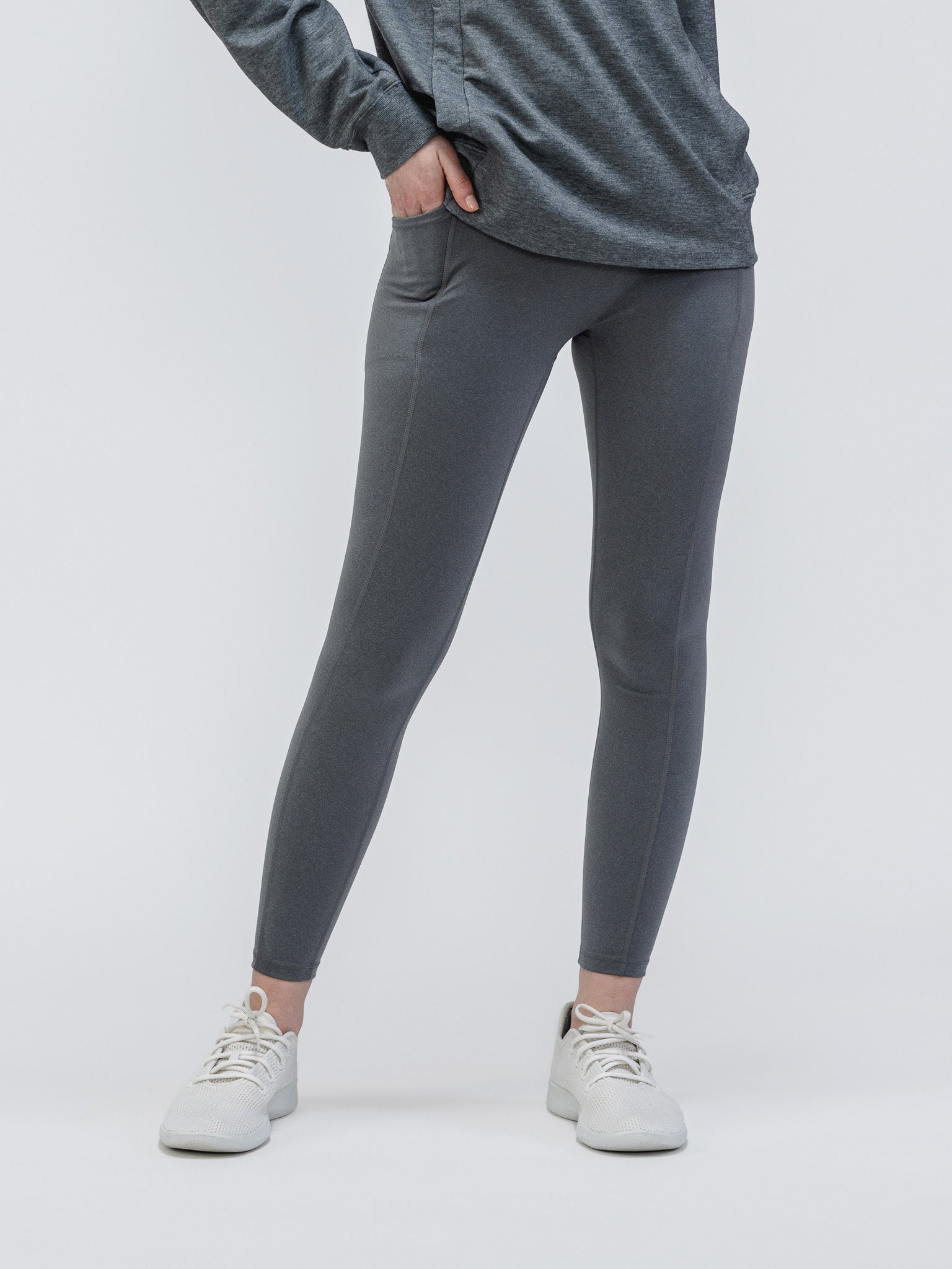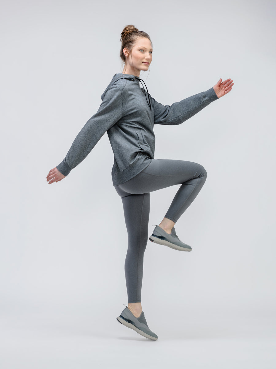 Women's Joule Active Legging in Charcoal Heather on model with hand in pocket women's charcoal heather joule active legging flat shot of front model wearing women joule active legging charcoal and terry for all hoodie classic grey heather jumping one leg in air women's charcoal heather joule active legging flat shot of back folded model wearing women joule active legging charcoal and terry for all hoodie classic grey heather holding sleeve