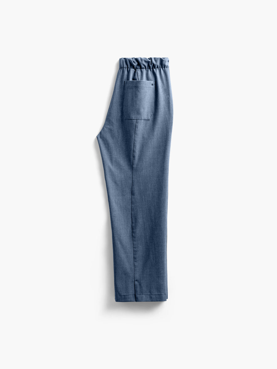 womens velocity pull on pant calcite heather on model in studio women's calcite heather velocity pull on pant flat shot of front womens aero zero oversized shirt light blue on model in studio women's calcite heather velocity pull on pant flat shot of back model wearing calcite heather velocity pull on pant and light blue aero zero oversized shirt facing away zoomed on encased elastic waistband model wearing women atlas v neck pullover sweater pearl