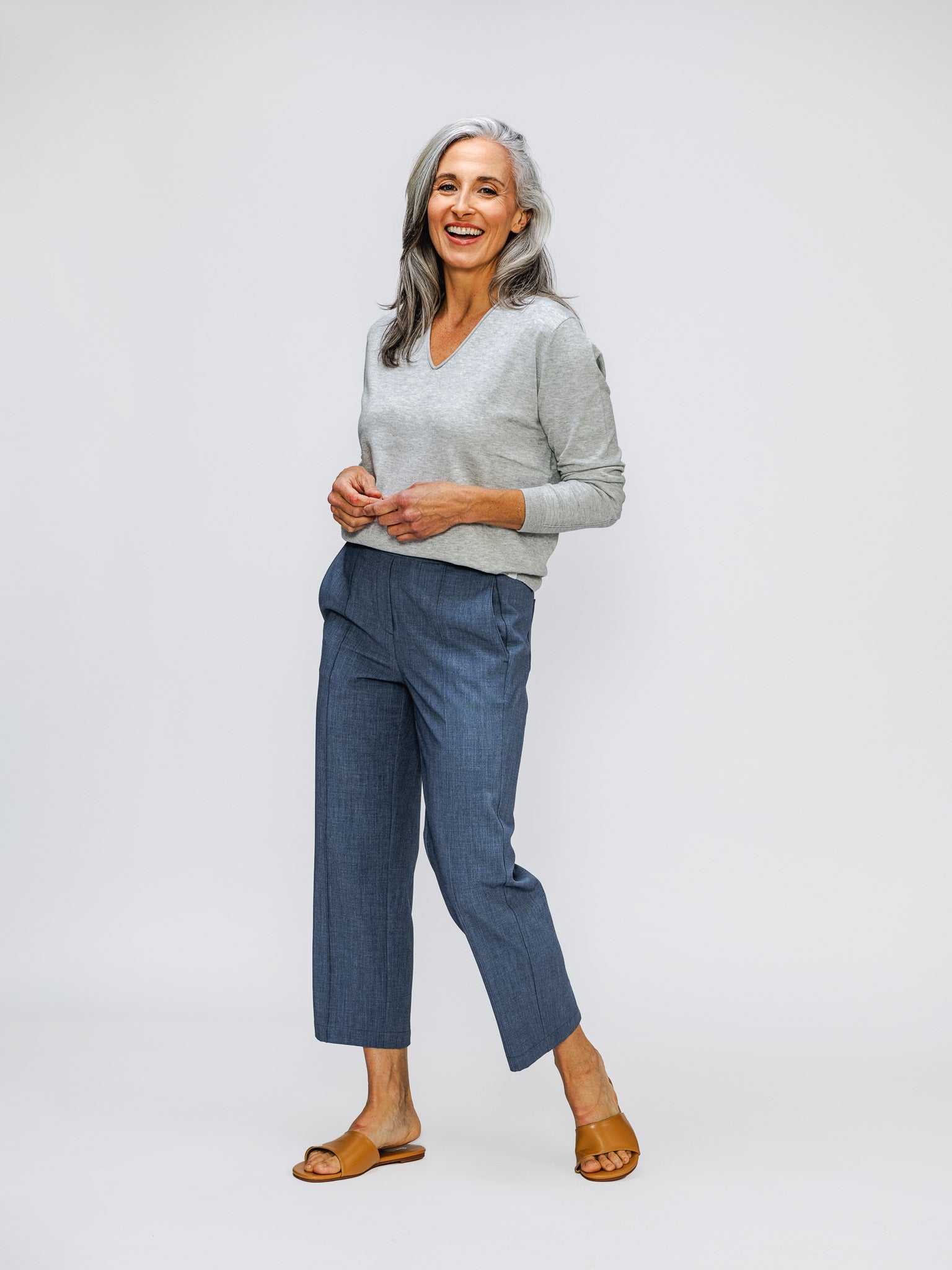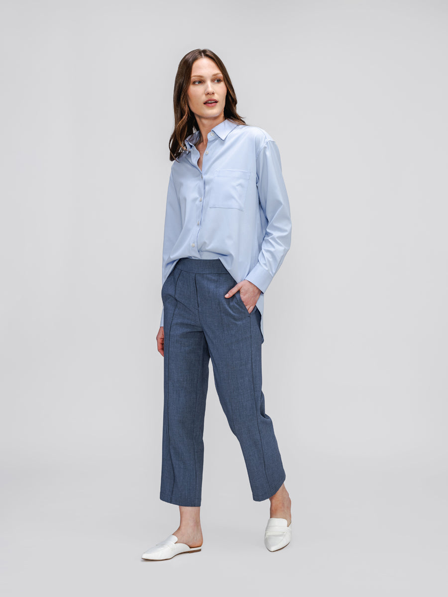 Cropped, wide leg fit that is slightly slimmer through the leg and lower rise compared to our Swift Wide Leg Pant. Features an elastic waistband for a comfortable fit; if in-between sizes, we recommend sizing down.